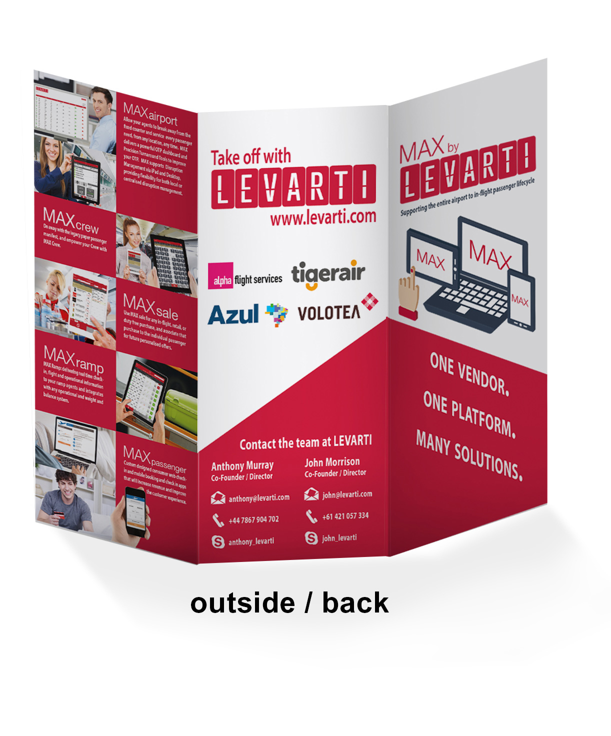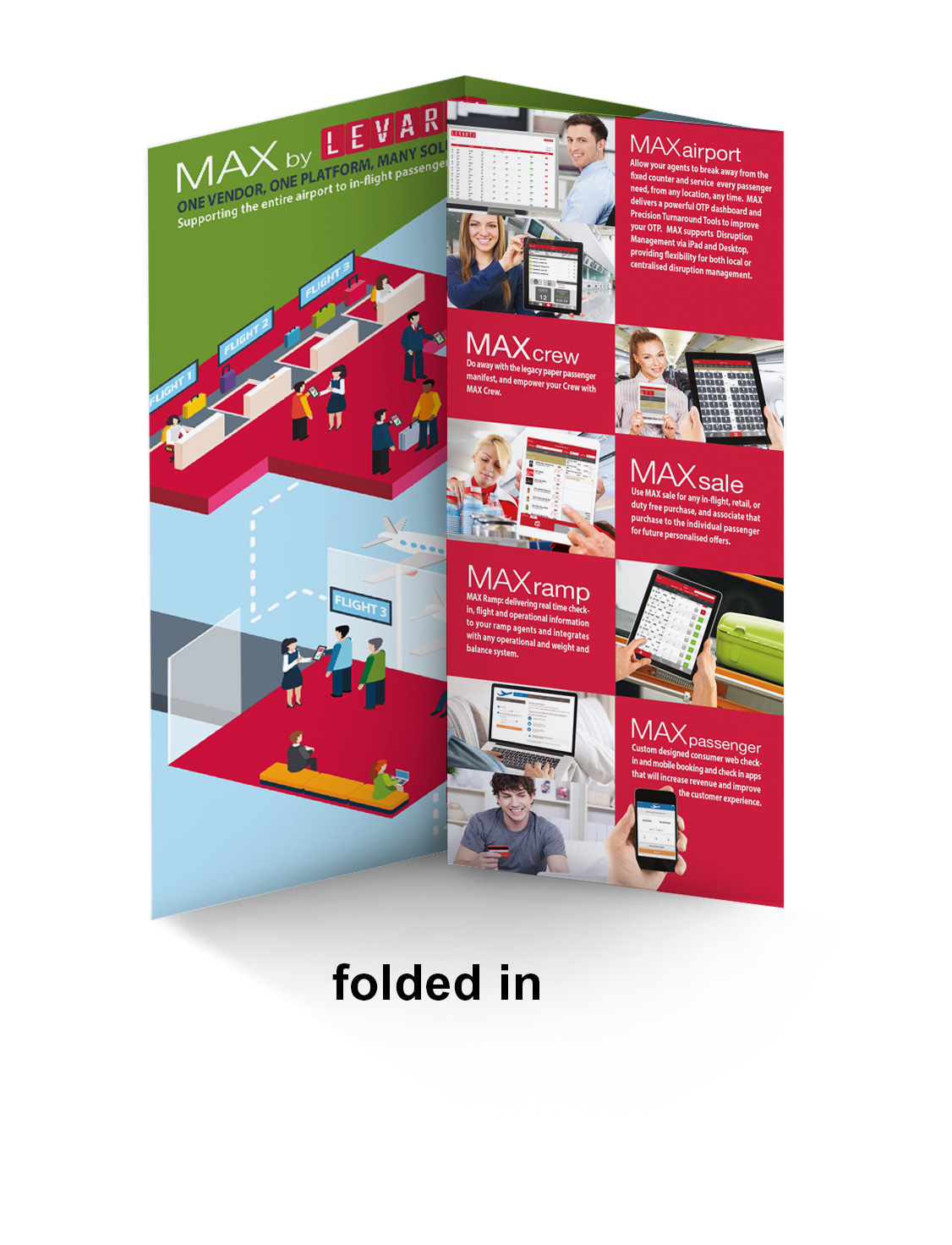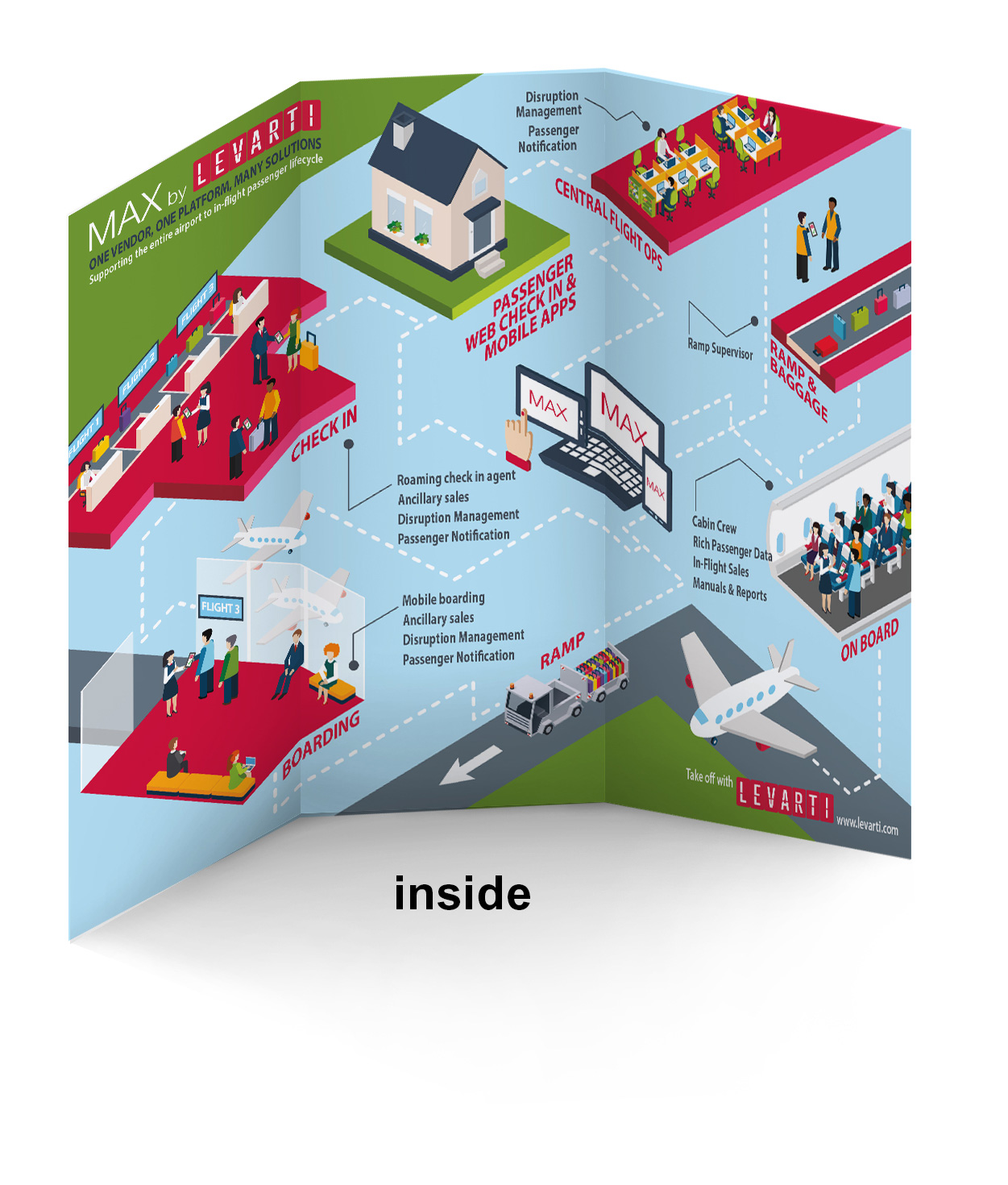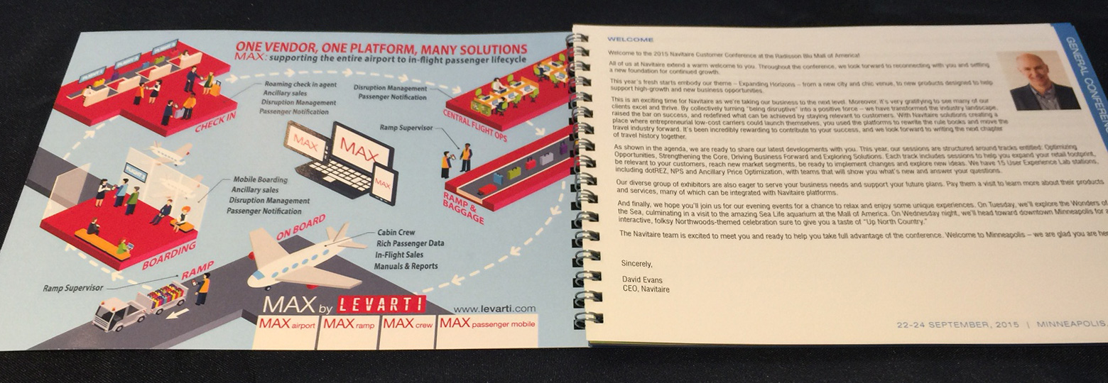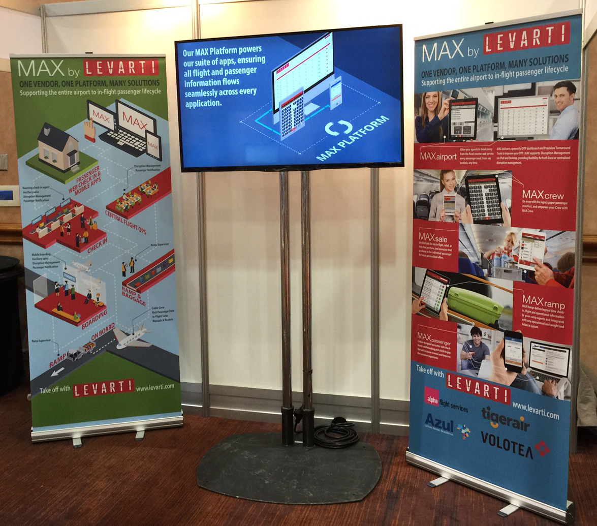 Technology company Levarti once again enlisted Minta Motion to design various print media and poster for their 2015 conference visits. The print media included updated business cards, a tri-fold brochure, 2 large vertical banners, and a full page design to be presented as the first page in a conference booklet of vendors. The project also included a promotional video and various internal training videos. The print design and video refreshed the look that was established in 2014, this year working with a solid, isometric design approach.